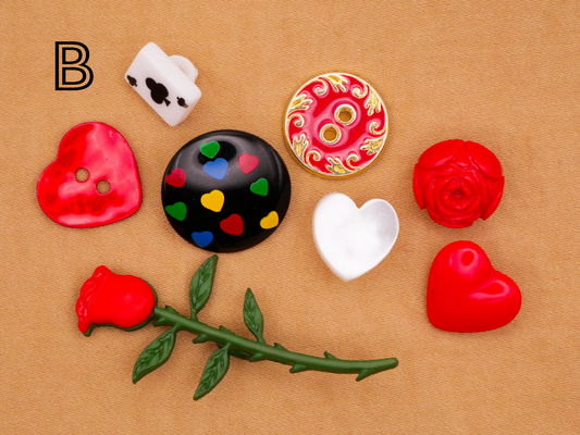 Queen of Hearts Wonderland Rose Heart Set of Eight Buttons 8-44mm