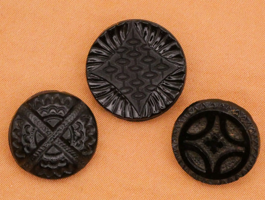 Radial Texture Black Celluloid Early Plastic Large Button Various 36-44mm