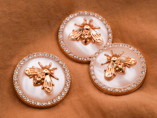 Bee Pearl Rhinestone Pink Gold Metal Button 13-21mm