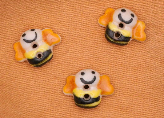 Bee Smiling Hand-Painted Ceramic Button 12x16mm