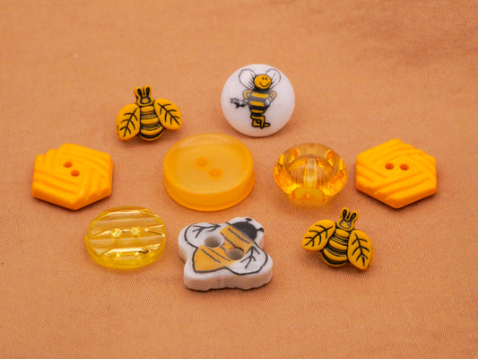 Bee Honey Yellow Plastic Ceramic Set of Nine Buttons 10-15mm