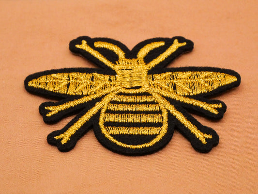 Bee Gold Stitch Fabric Iron On Patch Embellishment 50x61mm