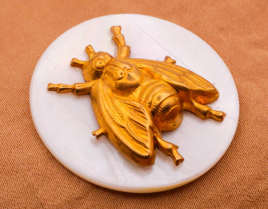 Bee Stamped Brass Mother of Pearl Button 30mm