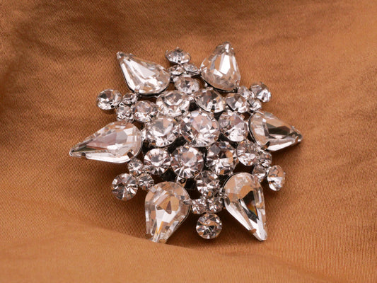Rhinestone Star Snowflake Glass Metal Large Button 40mm
