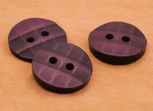 Ridged Purple Sew-Thru Vintage Plastic Set of Three Buttons 15mm
