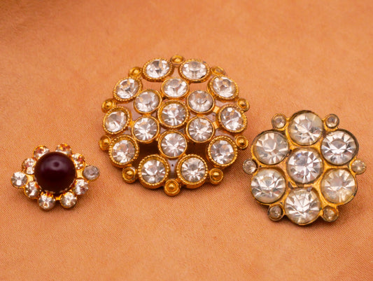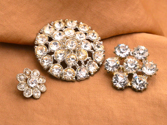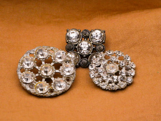 Rhinestone Set Three Circle Flowers Vintage Glass Metal Buttons 14-33mm