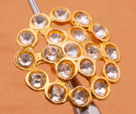 Rhinestone Ring Cluster Vintage Gold Metal Button 21mm