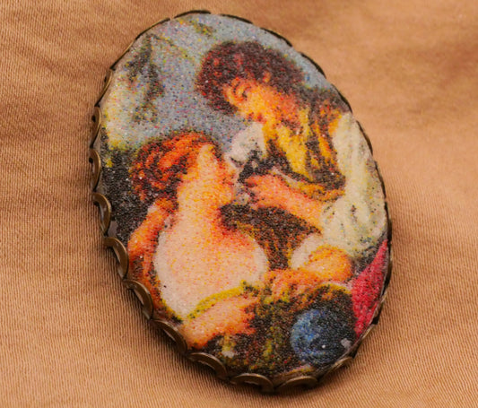 Romantic Couple Large Vintage Plastic Metal Button 31x41mm