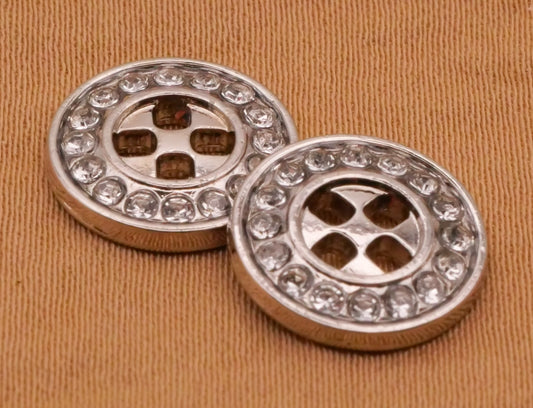 Rhinestone Vintage Spoked Circles Square Glass Metal Set of Three Buttons 18-25mm