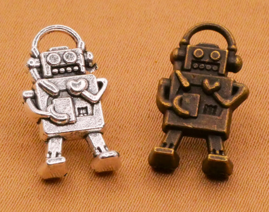 Robot Toy Heart Silver or Bronze Metal Button 10x17mm