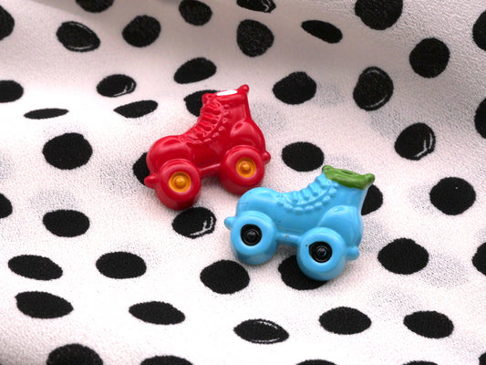 Roller Skate Pink Stripes Eyes Plastic Button 24x26mm