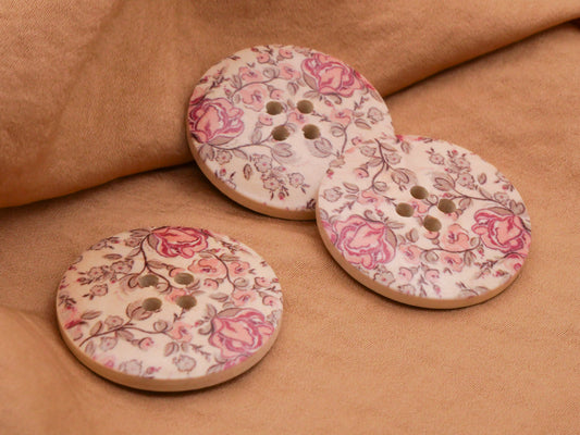 Rose Bush Pattern Wood Button 30mm