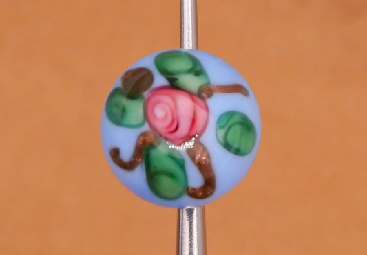 Rose Bud Aqua Blue White Lampwork Glass Button 9-10mm