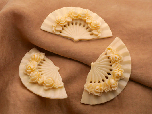 Roses Fan Ivory Resin Plastic Button 33x62mm