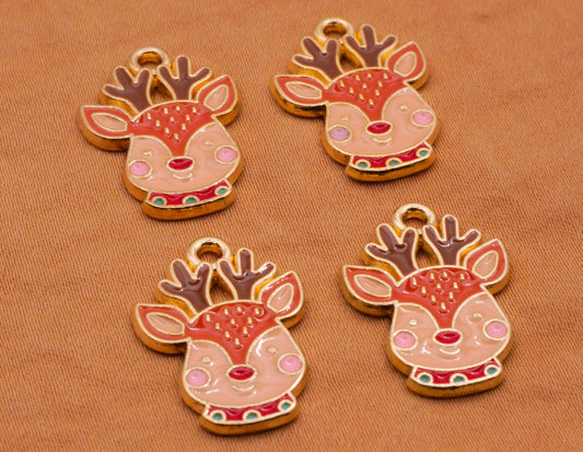 Rudolf Reindeer Deer Enamel Gold Metal Set of Four Charms 15x21mm