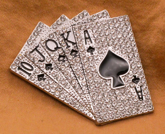 Royal Flush Playing Cards Spade Rhinestone Silver Metal Large Button 40x44mm