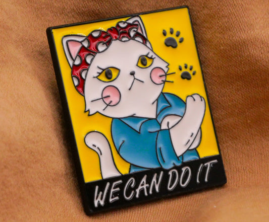Rosie the Riveter Kitty Cat We Can Do It Enamel Metal Button 25x30mm