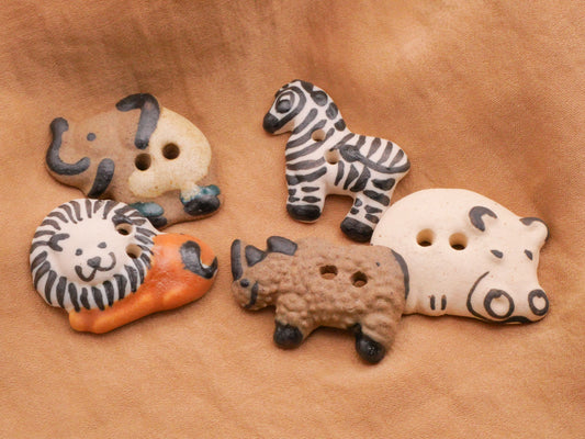 Safari Animal Elephant Zebra Hippo Rhino Lion Ceramic Hand-Painted Button Various 19-32mm