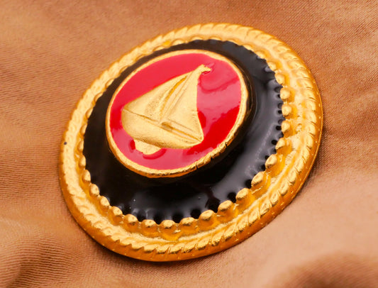 Sailing Ship Sailboat Red Enamel Gold Metal Large Button 32mm