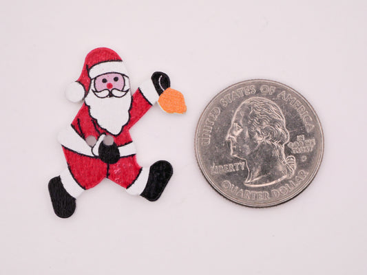 Santa Claus Running Christmas Wood Set of Seven Buttons 23x31mm