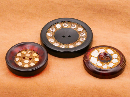 Sand Shell Inlay Early Plastic Root Beer Bakelite Vintage Button Various 28-37mm