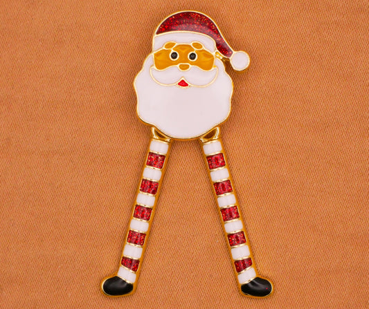 Santa Moveable Dangling Legs Enamel Metal Large Button 17x44mm