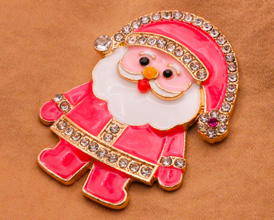 Santa Pink Enamel Rhinestone Large Metal Button 44x46mm