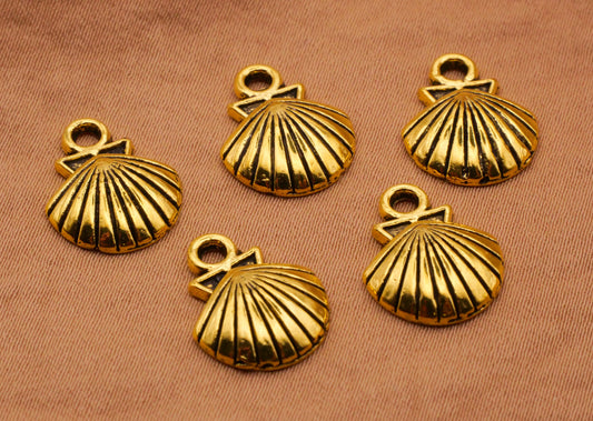 Shell Gold Metal Set of Five Charms Embellishments 12x14mm