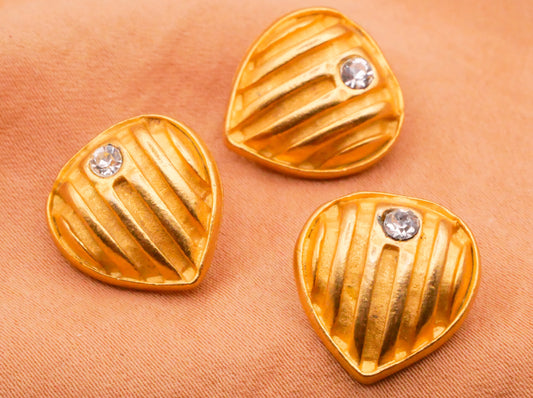 Shield Vintage Rhinestone Ribbed Gold Metal Button 15x16mm
