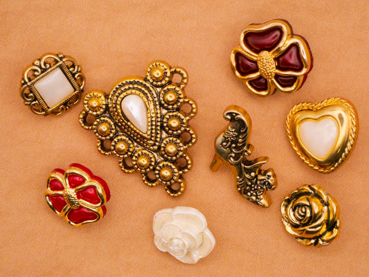 Shoe Flowers Gold Ivory Red Plastic Set of Eight Buttons 13-29mm