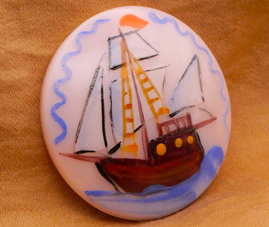 Ship Sails Hand-Painted Czech Pink Glass Large Button 35mm