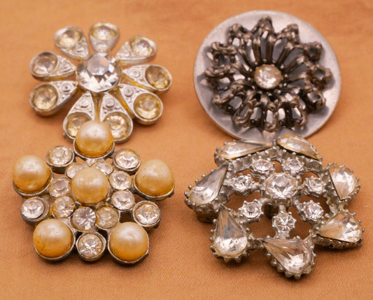 Snowflake Antique Rhinestone Glass Metal Button Various 30-34mm