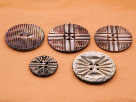 Smoky Carved Mother of Pearl Vintage Button Various 19-31mm