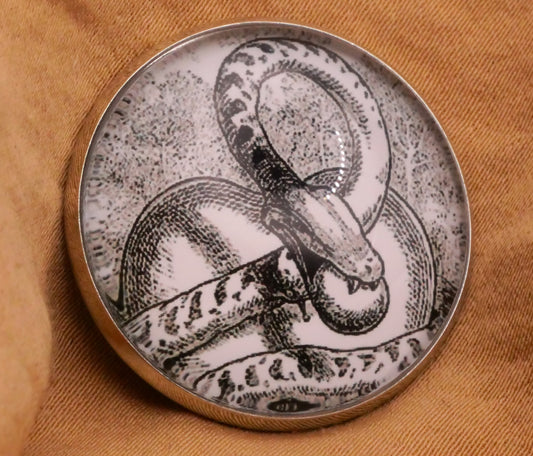 Snake Heart Glass Dome Silver Metal Button 27mm