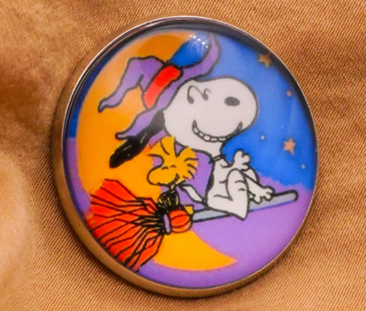 Snoopy Woodstock Peanuts Witch Moon Glass Dome Silver Metal Button 27mm