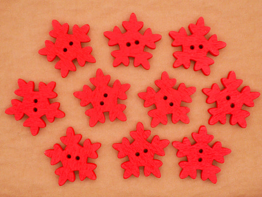 Snowflake Red Tree Green Wood Set of Ten Buttons Various 23-25mm