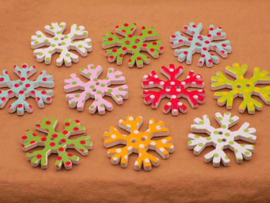 Snowflake Polka Dot Colorful Wood Set of Ten Buttons 23mm