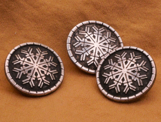 Snowflake Nordic Gold or Silver Metal Pair of Buttons 11mm