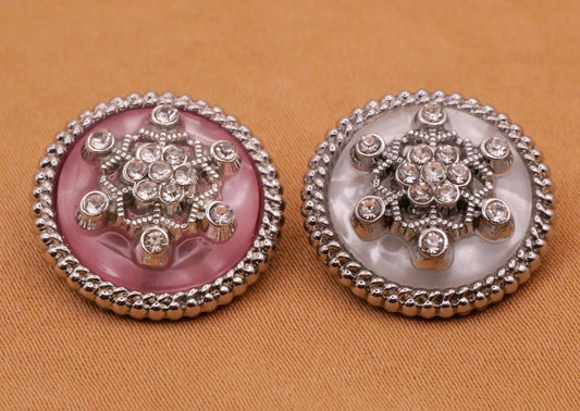 Snowflake Rhinestone Pink White Silver Metal Button Various 18mm