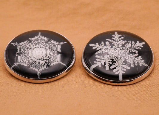 Snowflake Real Photograph Glass Dome Silver Metal Button Various 27mm