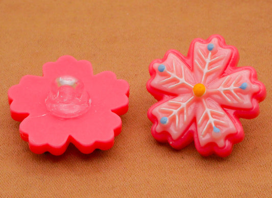 Snowflake Frosted Cookie Pink Plastic Pair of Buttons 22mm