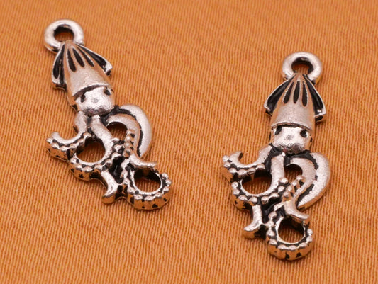 Squid Octopus Silver Metal Pair of Charms Embellishments 10x24mm