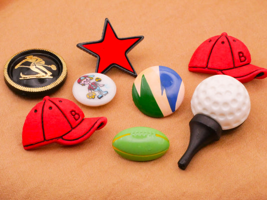 Sports Baseball Golf Skiing Plastic Set of Eight Buttons 11-28mm