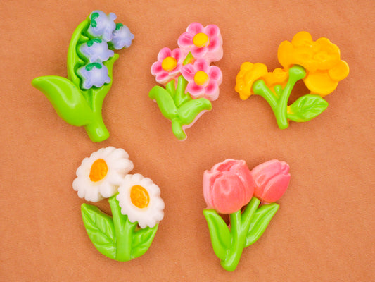 Spring Flowers Plastic Assorted Set of Three Buttons 20-35mm