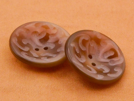 Squiggle Carved Champagne Plastic Pair of Buttons 20mm