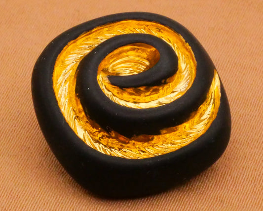 Spiral Swirl Matte Black Gold Vintage Glass Button 20mm