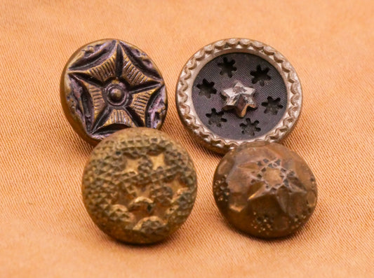 Star Victorian Metal Button Steel Cut Tinted Gilt Antique Button Various 11-14mm