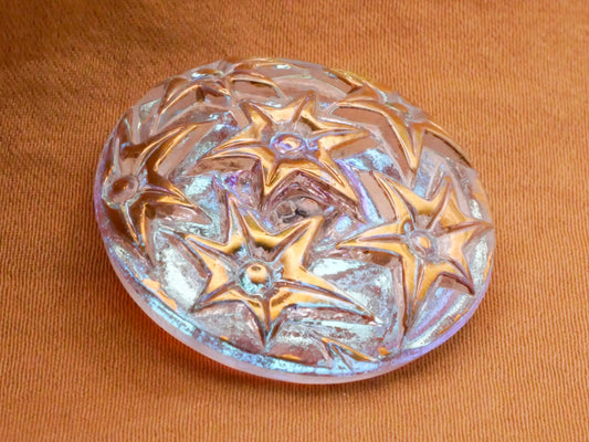 Starburst Stars Czech Glass Iridescent Purple Blue Pink Gold Button 27mm