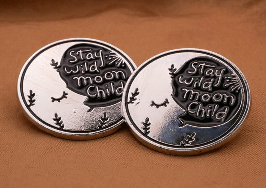 Stay Wild Moon Child Crescent Silver Metal Enamel Button 28mm