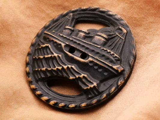 Steam Ship Boat Celluloid Early Plastic Vintage Large Button 37mm